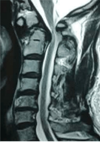 This 55-year-old man presented with progressive upper and lower limb numbness and gait imbalance over 3 years. When he eventually decided on surgery, he needed assistance with walking and could not manage chopsticks, he had no urinary or bowel compromise.